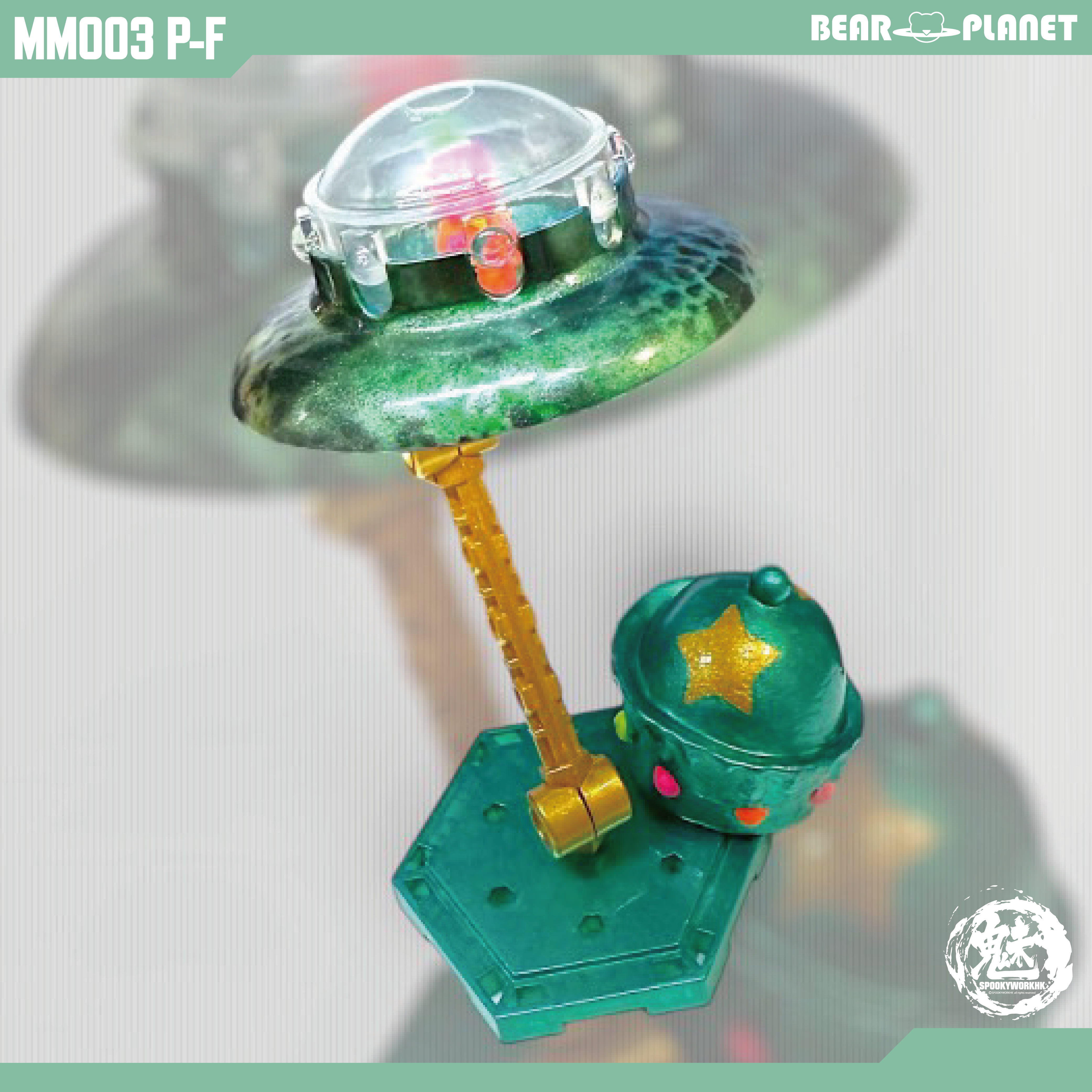 -Series Mini Model Series -Release Date 2024/10 -Specifications ABS Plastic Model Kit & 3D Print Resin -Size Approximately 24.5mm in Hight (Original UFO) -Product Image Design By SpookyWorkHK -Released by Bear Planet Limited *Please note that images shown may differ from the final product. *Each packing only contains one set of "MM 003 P-F UFO Express Dead Fire, I Dont Know What It Call" ©Bear Planet Limited ©SpookyWorkHK